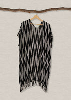 Handmade by Candelaria. Organic cotton and silk threads naturally dyed with the sedimentary rock, coal, and the sacatinta plant. Handwoven with intricate ikat patterns. Time to handcraft, 1 month.